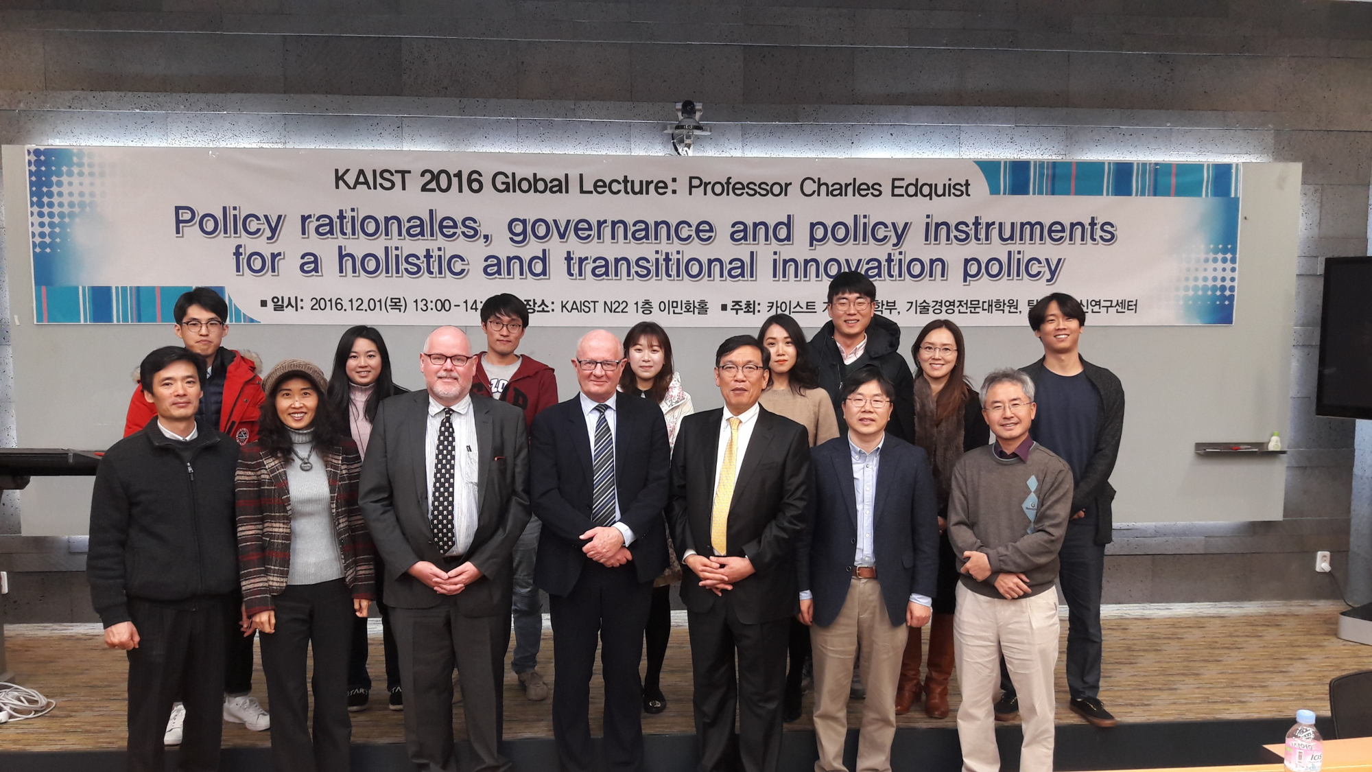 During November 29 – December 3, 2016, Charles was a guest at the Korea Advanced Institute of Science and Technology (KAIST). He gave the so-called “KAIST Global Lecture”. The topic was ”Policy rationales, governance and policy instruments for a holistic and transnational innovation policy”. During the visit to Korea he also gave a seminar at the Science and Technology Policy Institute (STEPI) on ”Innovation-related public procurement: Demand functions instead of products!” He also gave comments to the PhD projects at a Graduate Students Presentation Session and provide advice to the PhD students.