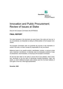 Edler, J., Ruhland, S., Hafner, S., Rigby, J., Georghiou, L., Hommen, L., Rolfstam, M., Edquist, C., Tsipouri, L., and Papadakou, M. (2006). Innovation and Public Procurement. Review of Issues at Stake. Study for the European Commission (No ENTR/03/24). Fraunhofer Institute for Systems and Innovation Research.