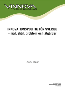 om underlag för utarbetande av en svensk innovationspolitik. Nio av forskarna besvarade denna förfrågan. Jag har sedan av Näringsdepartementet fått i uppdrag att sammanställa dessa svar så att de kan utgöra ett bidrag till det fortsatta arbetet med att utveckla en svensk innovationspolitik.